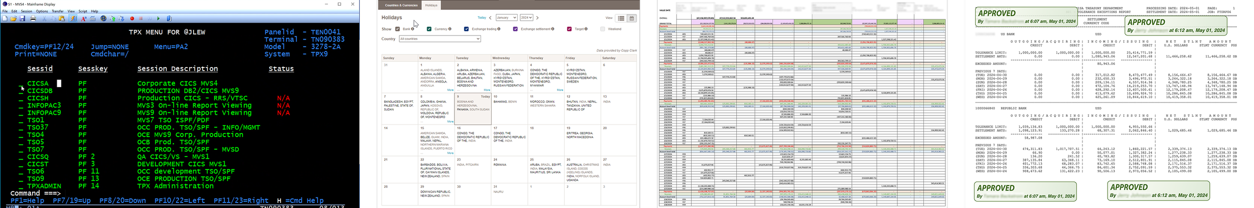 Analysts often had to switch between all four systems in a single workflow — reconciling numbers in Excel, validating breaches in PDFs, logging into VFTS to approve wires one by one, and confirming settlements in bank portals.